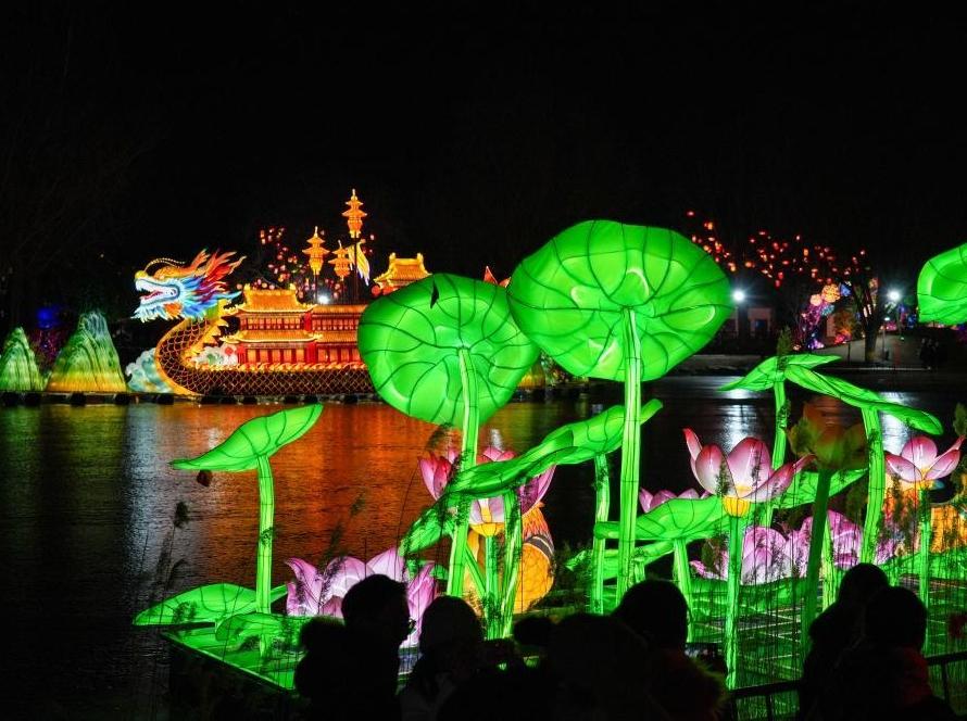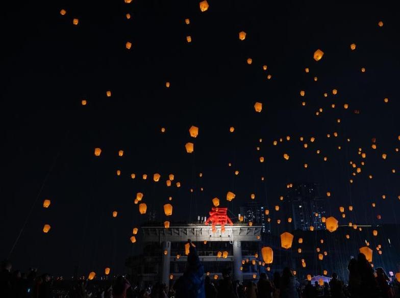 甘肃兰州:黄河百年铁桥 灯笼高挂迎新